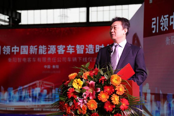 12月26日上午,衡阳智电客车有限责任公司车辆下线仪式在白沙洲工业园东部片区内恒天新能源汽车南方总部基地举行。市委书记郑建新宣布整车下线,标志着衡阳真正拥有了自己的新能源整车产业。恒天集团党委副书记、总裁刘海涛,市政协党组书记刘光跃出席仪式。随着郑建新宣布智电客车新基地车辆正式下线,我市第一辆“雁城牌”新能源客车缓缓驶出,这是衡阳市新能源汽车产业发展的重要里程碑,是衡阳市工业强市进程的丰硕成果,是